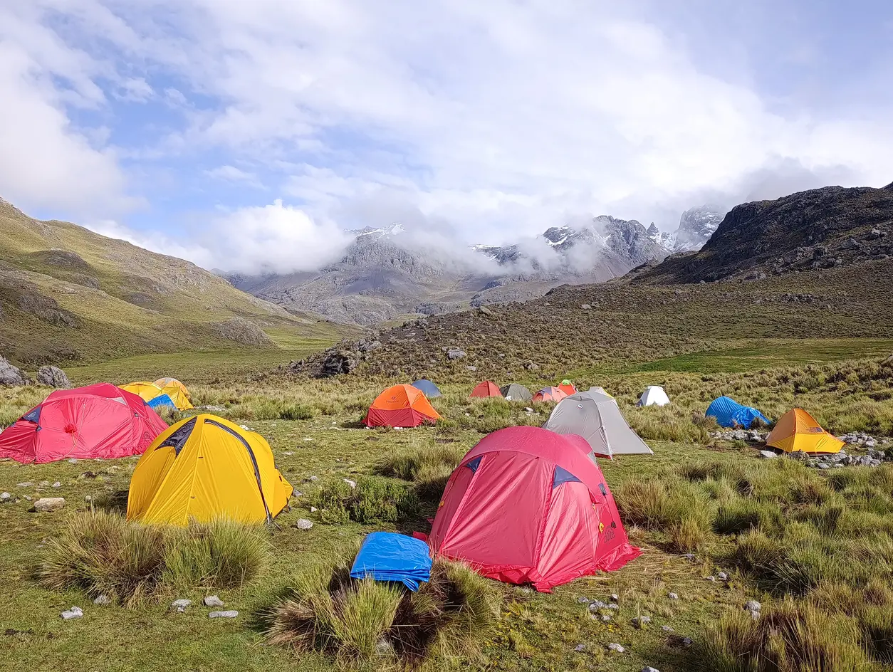 Tras el desayuno, iniciaremos la jornada ascendiendo hacia el Paso Vientunan, desde donde comenzaremos el descenso hacia Ruinapampa. La ruta continúa por la quebrada de Los Cedros con dirección a la quebrada Alpamayo, punto estratégico que nos regalará la icónica vista de la cara piramidal del nevado Alpamayo (5947 m) hasta alcanzar finalmente nuestro campamento Jancarurish.