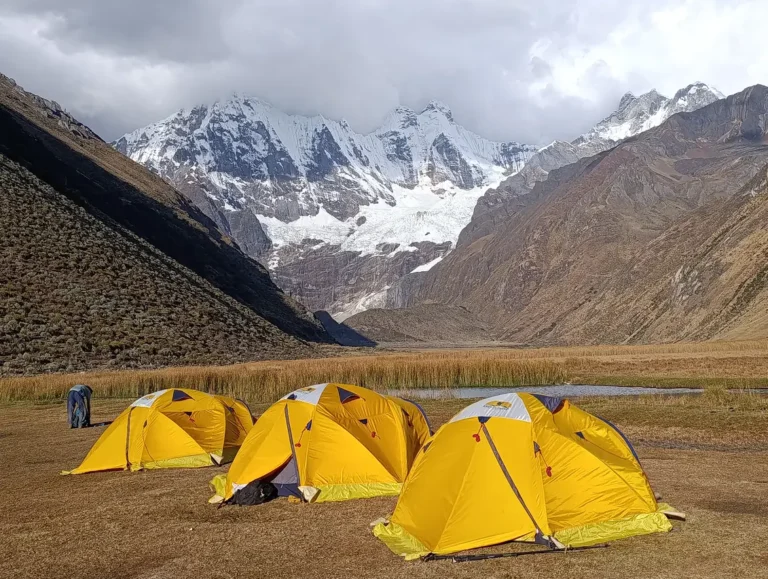 Después del desayuno, iniciaremos la caminata ascendiendo hacia el campamento Carhuacocha, durante el trayecto tendremos vistas increíbles de las montañas Siula Grande, Yerupaja, Ninashanca y la laguna Carhuacocha.
