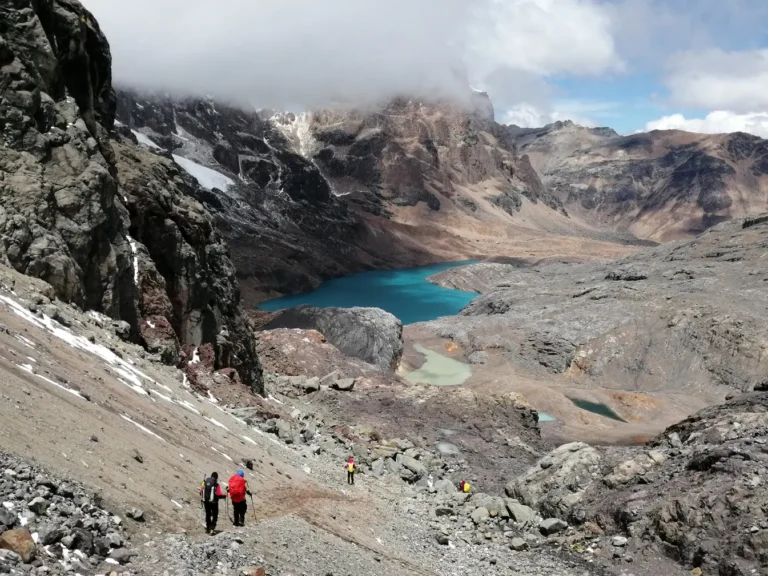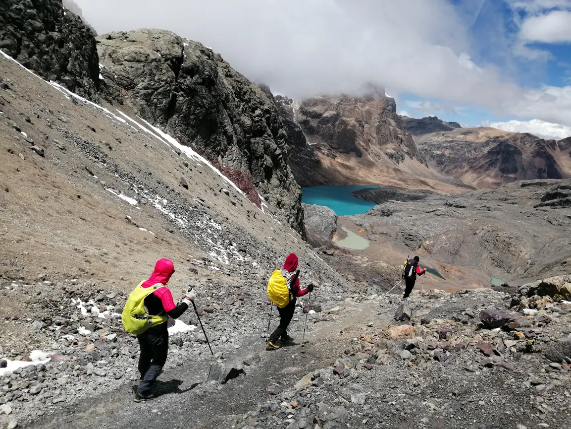 Esta jornada nos reserva una de las vistas más espectaculares de la Cordillera Huayhuash. Al alcanzar el paso de Sambunya, seremos testigos de una vista impresionante de los picos Ninashanca, Yerupajá y Sacra, que custodian las brillantes lagunas de Solteracocha y Jahuacocha. Tras disfrutar del paisaje, descenderemos hacia nuestro campamento, ubicado a orillas de esta última laguna.