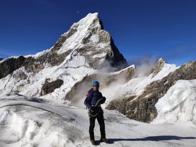 Recojo en el hotel a las 2:00 a.m., luego nos trasladamos al norte de Huaraz, hacia Carhuaz, donde tomaremos el desvió a la quebrada Ulta – Punta Olímpica, cruzando el túnel hasta el estacionamiento. La ascensión comienza por un terreno empinado y rocoso que nos conduce al glaciar, donde nos equiparemos con el material técnico de escalada. Durante el ascenso, el guía gestionará la seguridad en los tramos de mayor dificultad hasta alcanzar la cima. Finalmente, descenderemos por la misma ruta hacia el transporte para retornar a Huaraz.