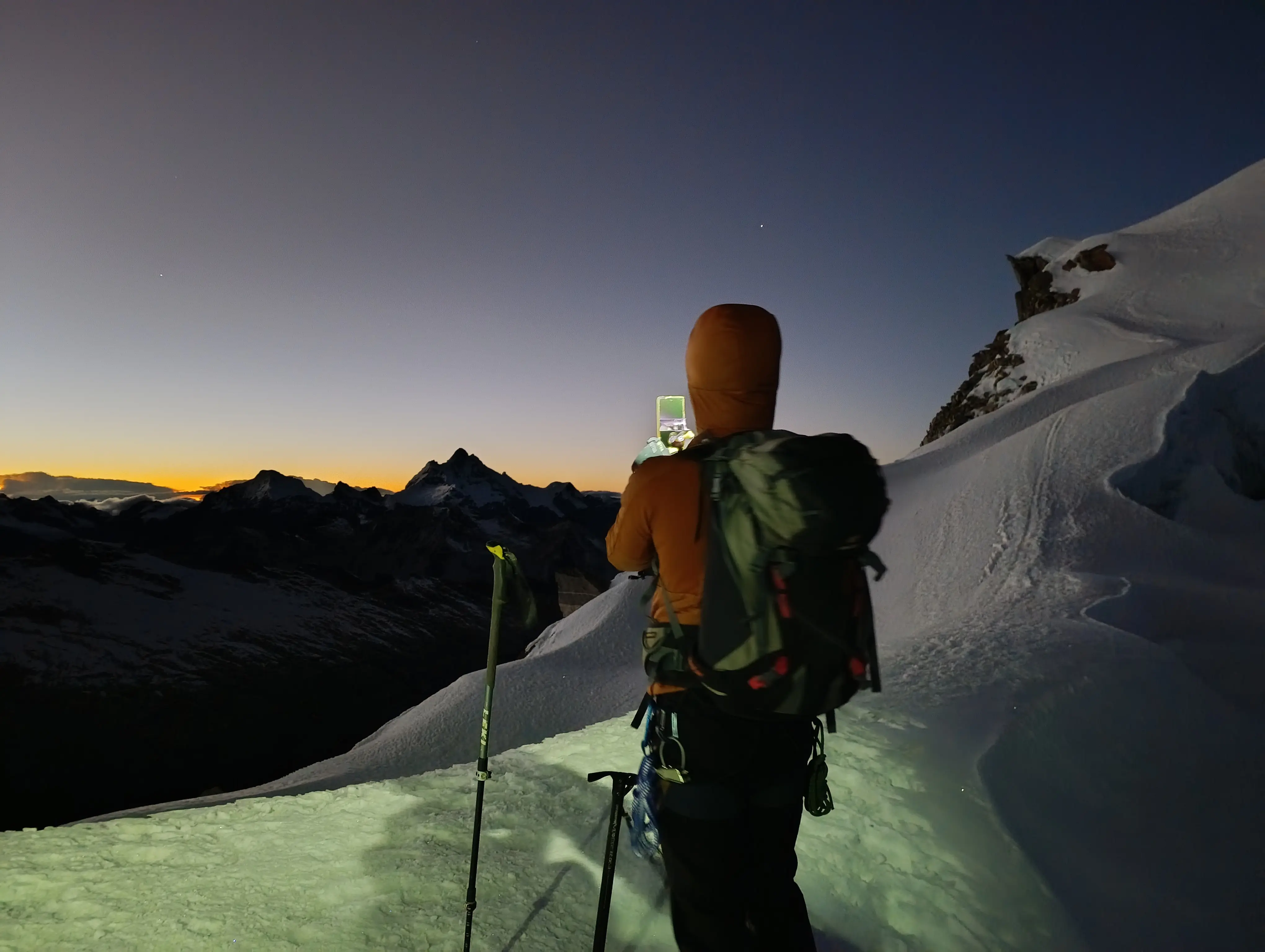 La actividad inicia a las 2 a.m., con un ascenso a través de placas de roca hasta alcanzar el borde del glaciar. Tras equiparnos con el material de escalada, continuaremos por la ruta clásica hasta alcanzar la cima. El descenso se realizará por la misma vía, cruzando el campo morrena hacia la quebrada de Llaca, donde se aborda el transporte para retorno a Huaraz.