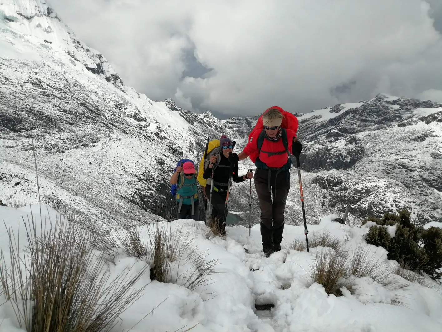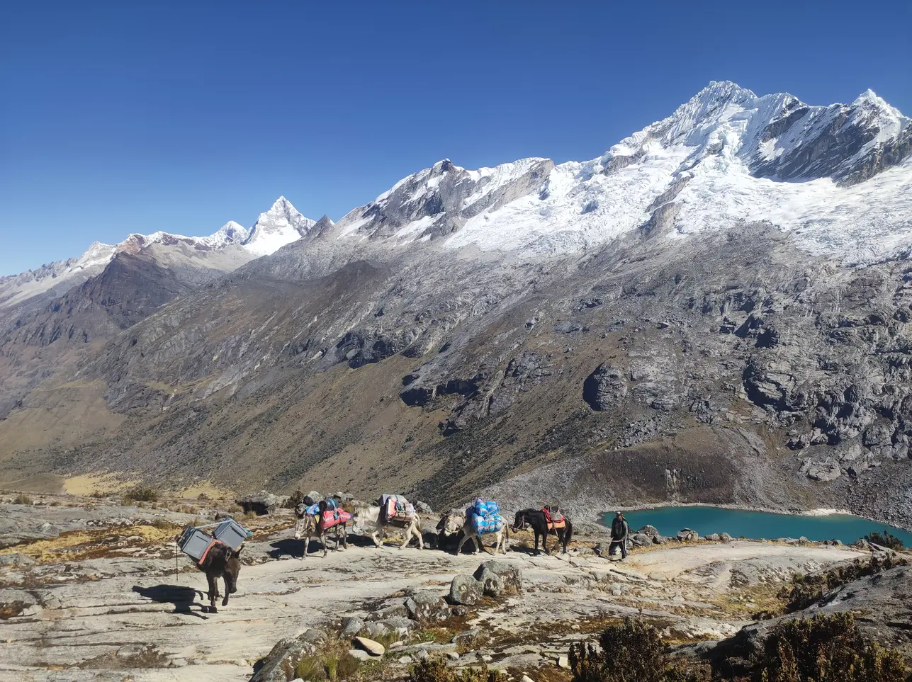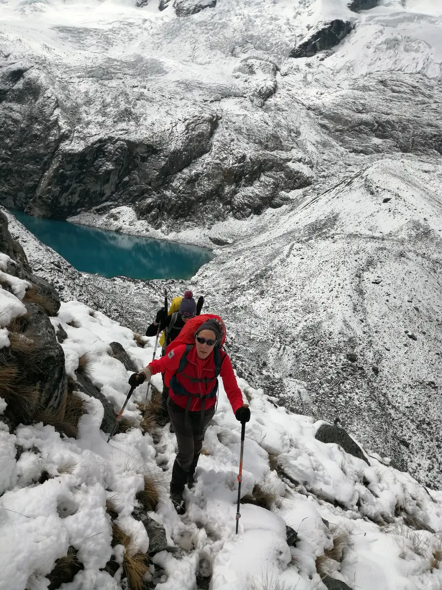 Iniciaremos el descenso por la quebrada de Huaripampa hasta el pueblo de Yanachaca, para luego ascender hacia Vaquería. Donde el transporte espera para el traslado. En el trayecto, cruzaremos el emblemático paso Portachuelo, que ofrece una de las vistas panorámicas más espectaculares de los Andes como el Nevado Huascarán, junto al Chopicalqui, Chacraraju, los cuatro Huandoys y el Pisco. Durante el descenso, pasaremos por las famosas lagunas de Chinancocha y Orconcocha para finalmente arribar a Huaraz.